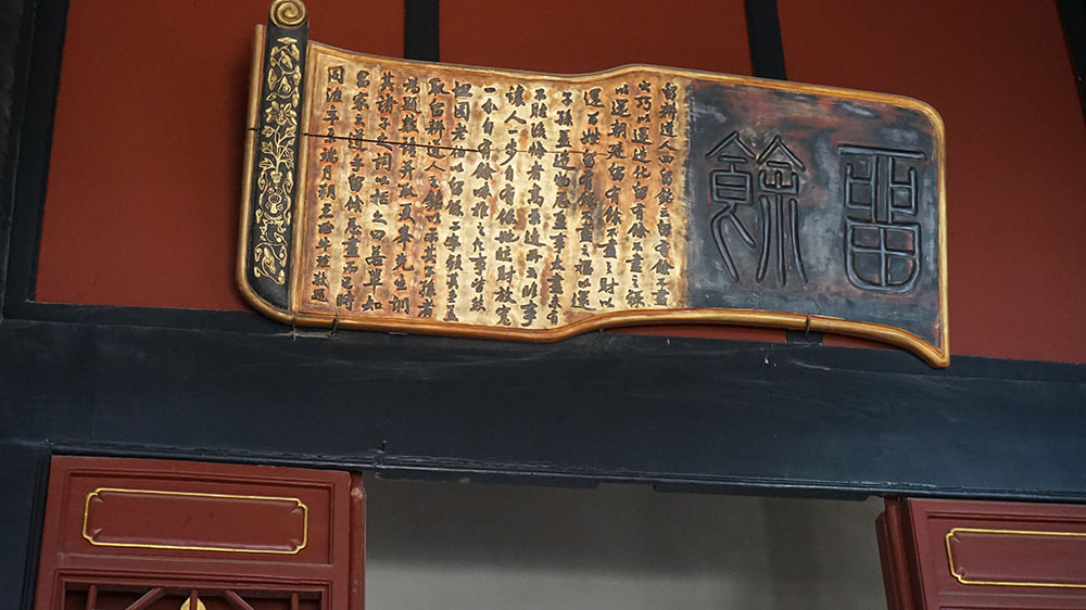 特點之二:儉,即勤儉為本,耕讀傳家。康百萬家族繼承中國傳統(tǒng)文化,克勤于邦,克儉于家,經(jīng)過十幾年的苦心經(jīng)營,終于積累起百萬巨富。置身康百萬莊園,抬頭俯首皆有匾額楹聯(lián)與石刻碑文映入視線,大多記載著歷代莊園主人告誡子孫們的家訓名言,蘊涵著深厚的人生哲理,需要我們抬頭仰望和俯首深思。例如,康家會客大堂內(nèi)就掛著這樣一副楹聯(lián):“耜耕三省當思創(chuàng)業(yè)維艱,船行六河須防不世風浪。”