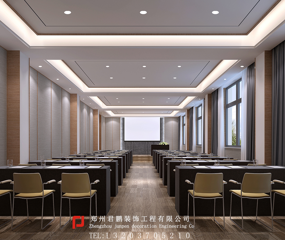 濮陽商務酒店的會議室也是古色古香,會議室內的桌椅家具采用實木制作,木質地板與整個會議室的裝飾相得益彰,采用淺灰色做背景顏色,更增添了文化氣息。