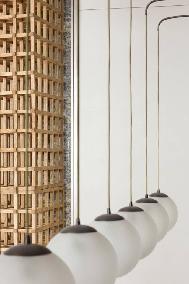 吧臺背景的設計源自于海浪的形態(tài),在大海的低吟淺唱里,靜訴著美好時光。在色彩的選擇上,在陽光與大海的包圍下,選用安靜沉穩(wěn)不失活潑的黃色搭配大量的低調簡約灰白,打造出空間的通透感和舒適氛圍。