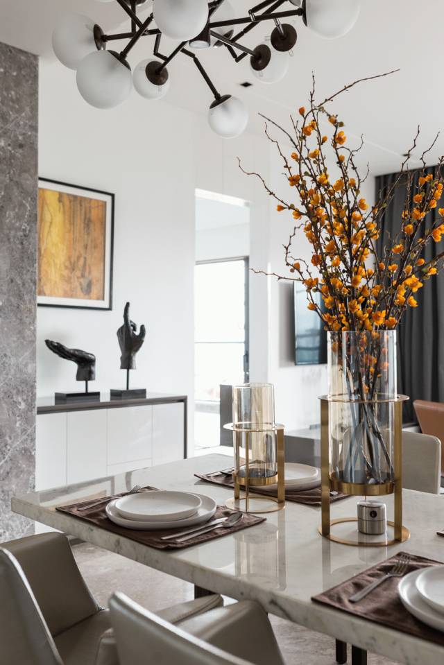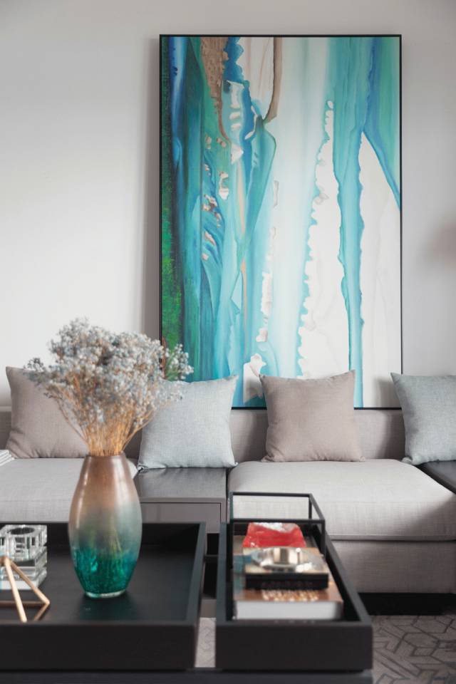 細節(jié)成就品質,大空間藏小細節(jié),家具、飾品的大膽用色,整個空間充滿了碰撞的活力。橙色如火,感受的是熱情和張麗;綠色搖曳,如海風輕撫,真想時光在這暖色的海洋里停止。