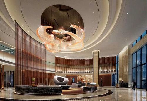 2、現(xiàn)代化:這種設(shè)計(jì)風(fēng)格完全是現(xiàn)代化的設(shè)計(jì),利用燈光和色彩設(shè)計(jì)是整個(gè)大堂充滿(mǎn)時(shí)尚氣息。比如,大堂頂面球面形和地面圓形圖案互相呼應(yīng),再配以曲面形墻壁與淡雅的色彩,大堂頂面設(shè)計(jì)有如星星閃爍的燈光,讓客人猶如身臨太空,情趣無(wú)窮;若再輔以玻璃、不銹鋼和磨光花崗巖等反光性強(qiáng)的材料裝飾的通道,更顯得玲瓏剔透,充滿(mǎn)了現(xiàn)代感。