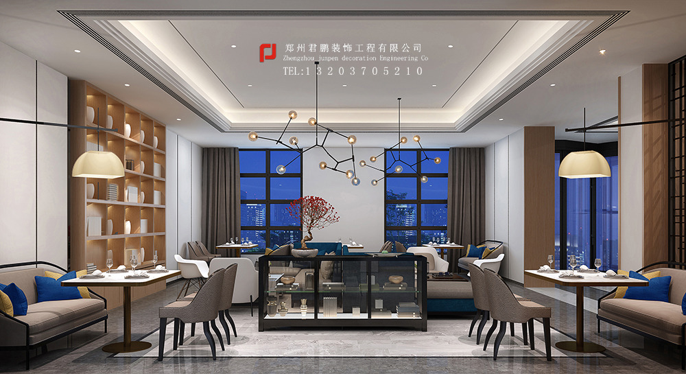 休息區(qū)擺放的桌椅既能保證顧客的休息又能保證顧客的用餐,休息區(qū)頂部的吊燈是君鵬裝飾專門(mén)為璞華酒店定制的仿星座燈,不規(guī)則的吊燈形狀遠(yuǎn)看就像是夜晚天空中的星座,閃閃發(fā)光。