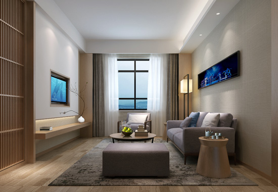 濮陽商務酒店裝飾設計整體上采用了原木裝飾,不添加其他任何點綴,更原始,使原生態環保理念深入人心。酒店的設計色彩采用淺色系是為了搭配原木裝飾,進入大廳便有屏風映入眼簾,鏤空設計的木質線條平行交錯,好似星空中交錯的繁星。