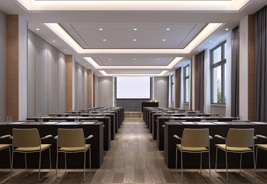 濮陽商務酒店的會議室也是古色古香,會議室內的桌椅家具采用實木制作,木質地板與整個會議室的裝飾相得益彰,采用淺灰色做背景顏色,更增添了文化氣息。